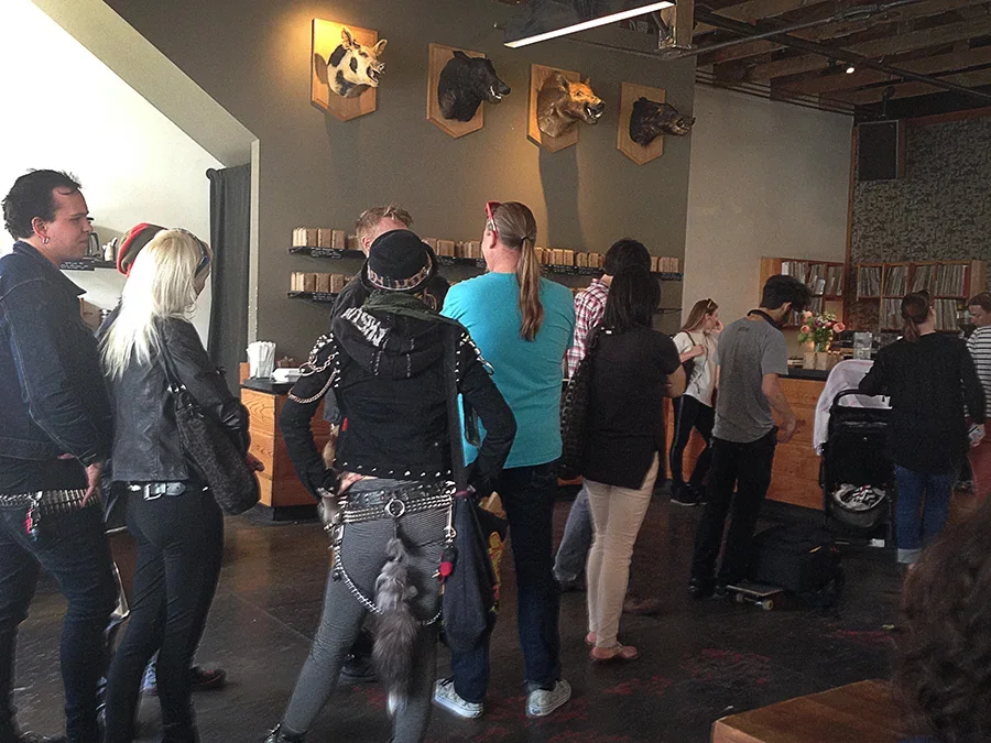After a hard morning not running one of the world's finest agencies you need an artisan latte. Nicely spotted Vanessa Green.