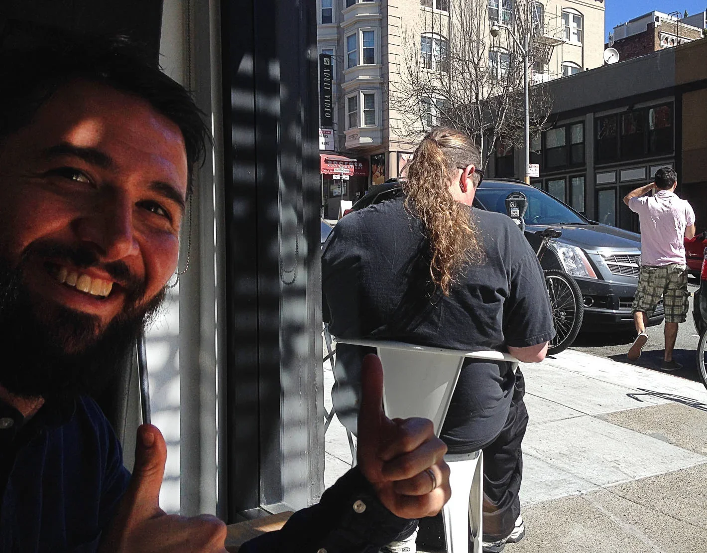 During Nick's last latte in SF this unsuccessful Jeff in training was spotted. Keep up the good work buddy, you're right on track.